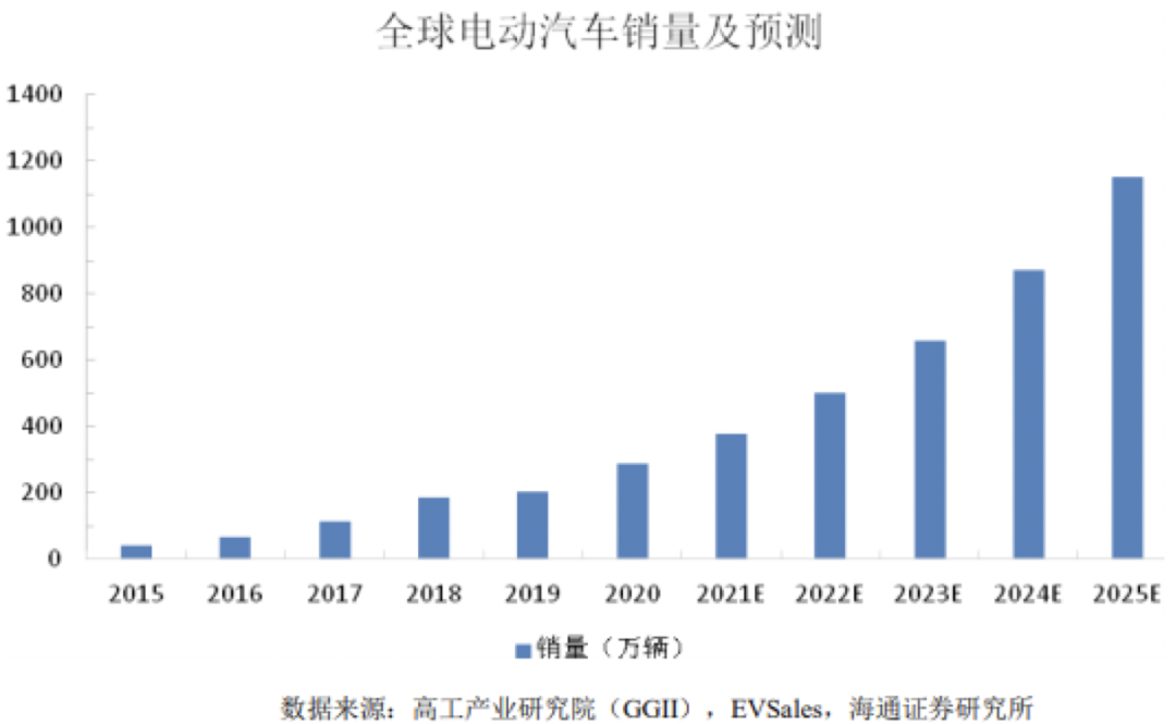 GGII的预测显示,随着全球各国政策驱动、行业技术进步、配套设施改善以及市场认可度提高,电动汽车销量预计将维持良好的发展态势。到2025年,全球电动汽车销量将达到1150万辆,相较于2020年年均复合增长率为32%。