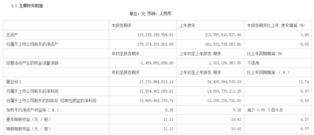 4月27日晚间,“白酒一哥”——贵州茅台(600519.SH)发布2021年一季报。今年1~3月,贵州茅台实现营收272.71亿元,同比增长11.74%;实现归母净利润139.54亿元,同比增长6.57%。