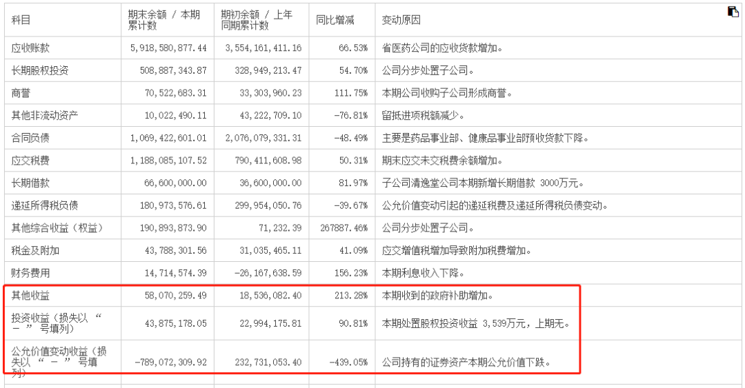 那么,究竟发生了什么呢?从报表中,我们注意到,公司有一项非经常性损益,规模高达6个多亿,而扣非后的增长将近30%。这笔非经常性损益又是从何而来?这数据可能来自三个科目:投资收益、其他收益和公允价值变动损益,而公允价值变动损益接近7.9亿元,原因为公司持有的证券资产本期公允价值下跌。有股民称,这是“炒股亏了八个亿。”你可以把它当成一个雷,也可以不用管他,毕竟不是主业。当然,从A股市场这一批龙头股来看,敢这么亏的公司并不多见。