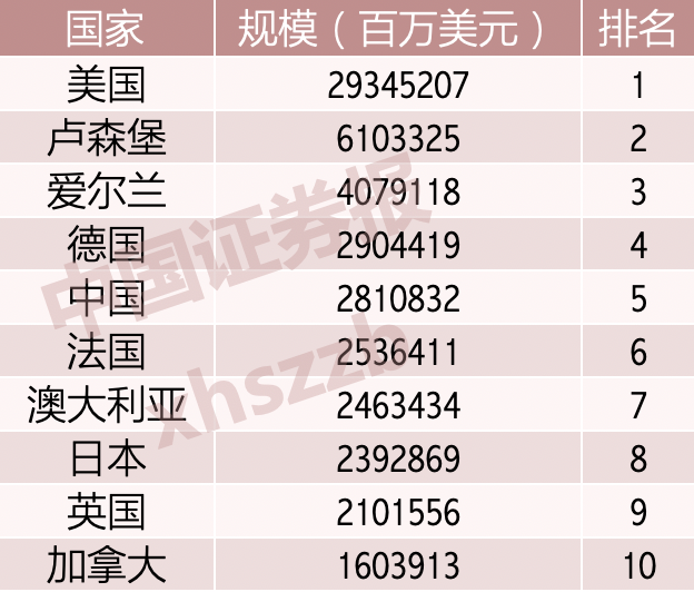 ICI数据显示,截至2020年底,受监管的开放式基金规模排名前十的国家分别为美国、卢森堡、爱尔兰、德国、中国、法国、澳大利亚、日本、英国、加拿大。中国排名第五。