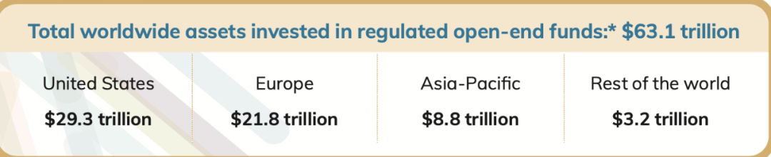 美国投资公司协会统计显示,截至2020年底,全球受监管的开放式基金总规模为63.1万亿美元。美国受监管的开放式基金规模为29.3万亿美元,欧洲为21.8万亿美元,亚太地区为8.8万亿美元,全球其余地区合计3.2万亿美元。