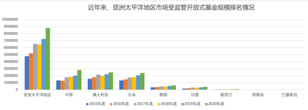 基金发行火爆,加上2020年基金投资业绩给力,到了2020年底,中国开放式公募基金一跃成为亚太区“老大”。