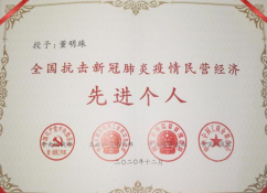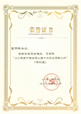 (图为董明珠“2020年度中国全面小康十大杰出贡献人物”特别奖荣誉证书)