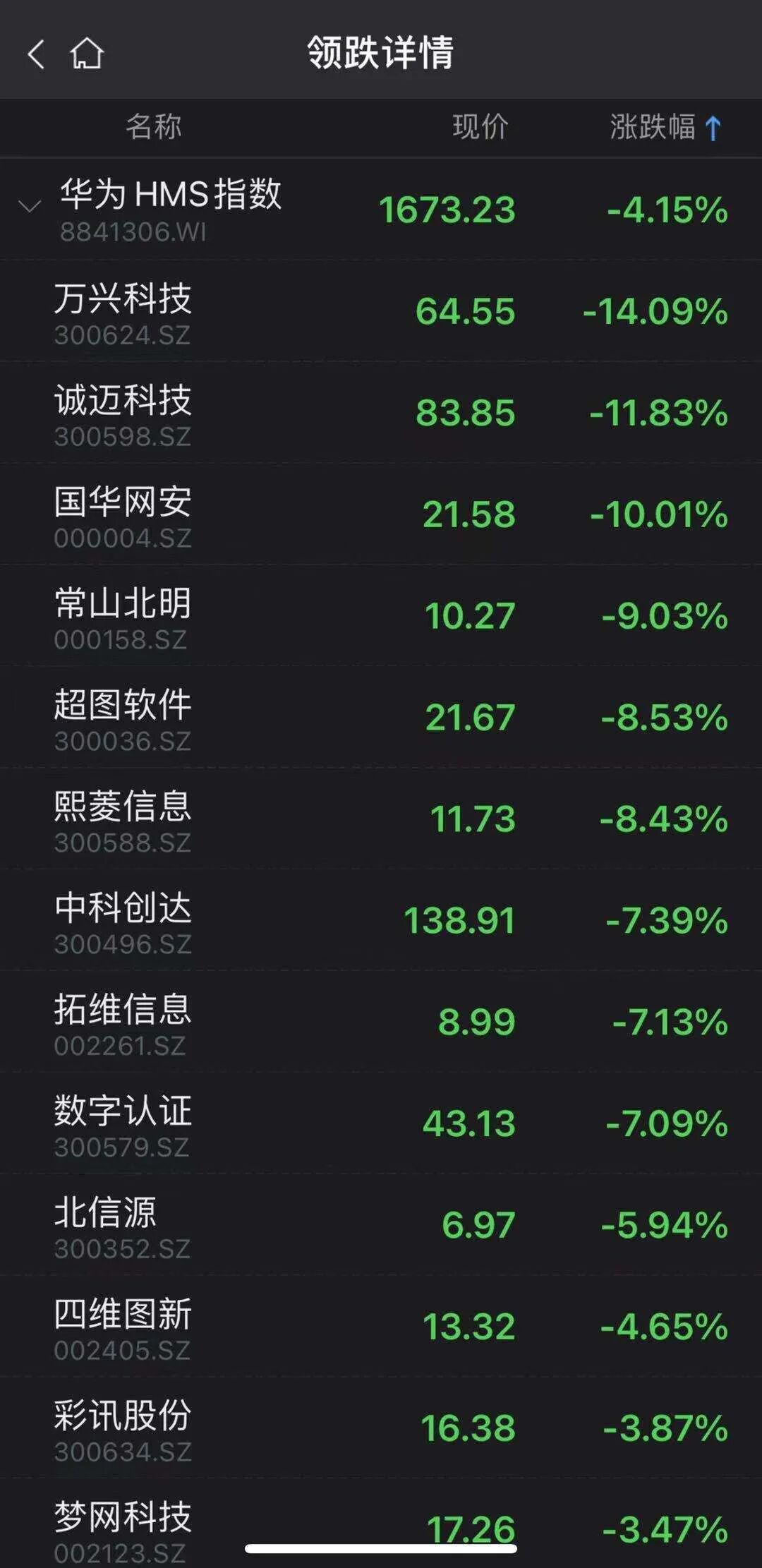 今日,近期火热的华为鸿蒙概念急速降温,并且尾盘出现加速跳水态势。