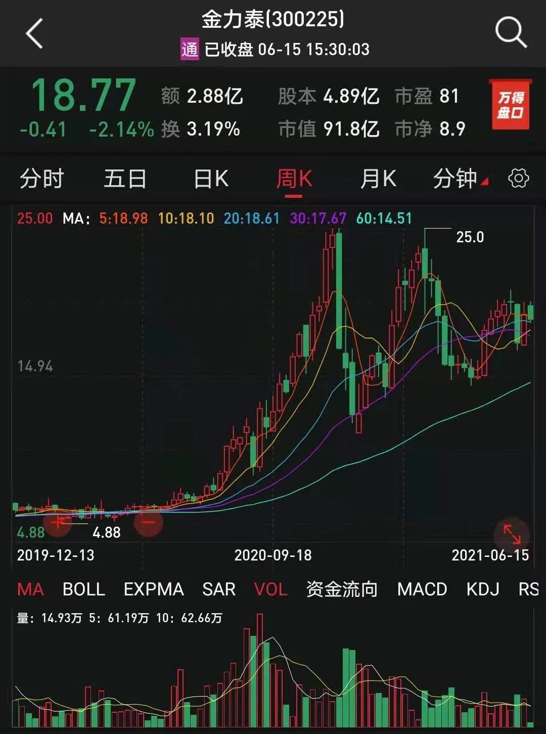 受高管拟增持消息刺激,今日金力泰股价高开,但随后一路走低,收盘下跌2.14%。