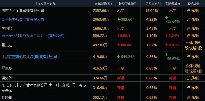 截至今年3月31日金力泰前十大股东名单 来源:同花顺