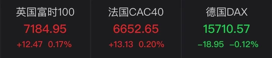欧洲主要股指收盘涨跌不一,英国富时100指数收盘上涨0.17%,德国DAX30指数下跌0.12%,法国CAC40指数上涨0.20%。