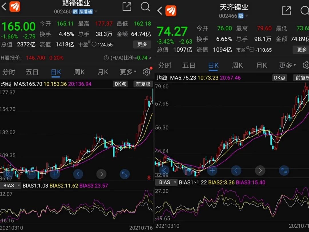 赣锋锂业从此前预盈8亿元至12亿元,上修至预盈13亿元至16亿元,同比大增730.75%至922.46%。天齐锂业则从此前预计亏损1.3亿元至2.5亿元,调整为预盈7800万元至1.16亿元,同比扭亏为盈。