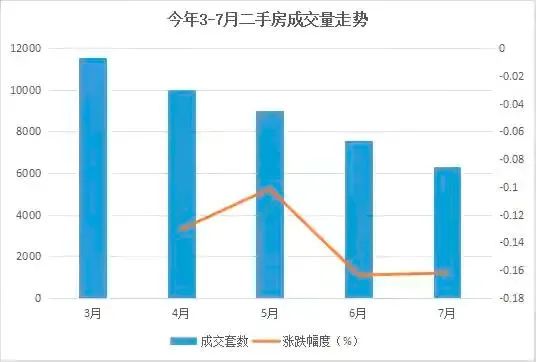 今年3月,杭州二手房成交量一度达到了11534套的峰值。到了7月份,这个数字仅剩下6179套。短短4个月,二手房成交量腰斩。