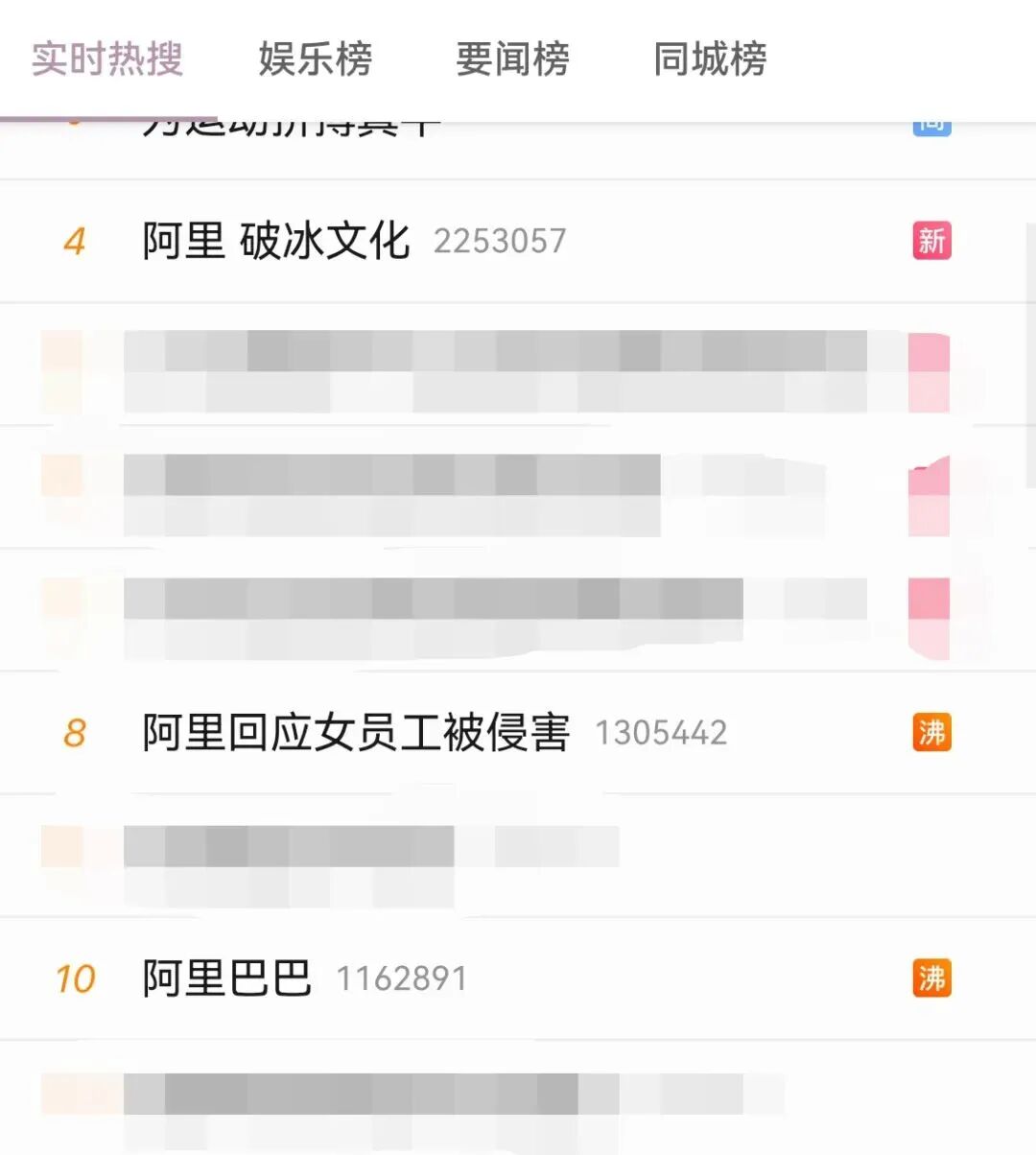 8月10日晚间,#阿里巴巴##阿里回应女员工被侵害#等多个词条登上微博实时热搜榜。