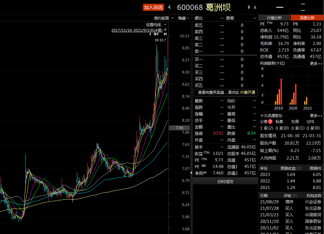 自二者合并的消息曝光后,葛洲坝直接迎来两个涨停,从去年10月至今,葛洲坝的股价涨幅已超过60%,目前市值为457亿元。