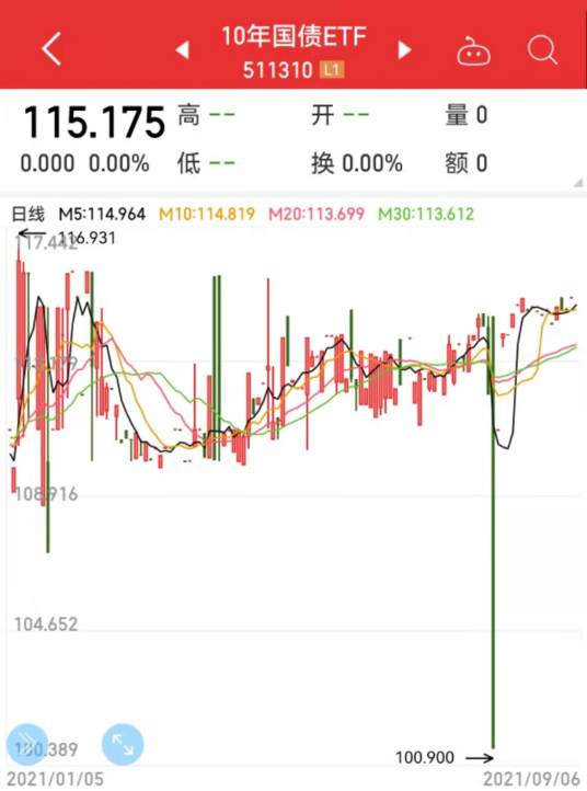 无独有偶,8月5日,富国中证10年期国债ETF下跌1.89%,当日成交额为119万元,走势平稳,8月6日突然暴跌9.99%,全天成交额仅19万元。8月9日,这只基金再次涨停,成交额仅1万元。