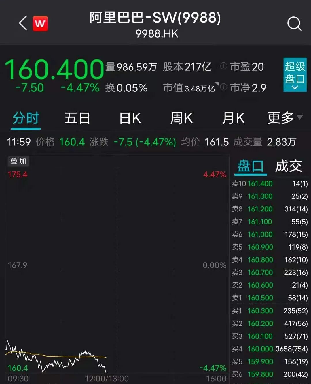 截至午间收盘时,腾讯控股、阿里巴巴、网易、京东集团、美团分别下跌3.67%、4.47%、2.92%、3.49%、6.32%。而电商软件服务公司的微盟集团、中国有赞分别下跌6.11%、3.51%。