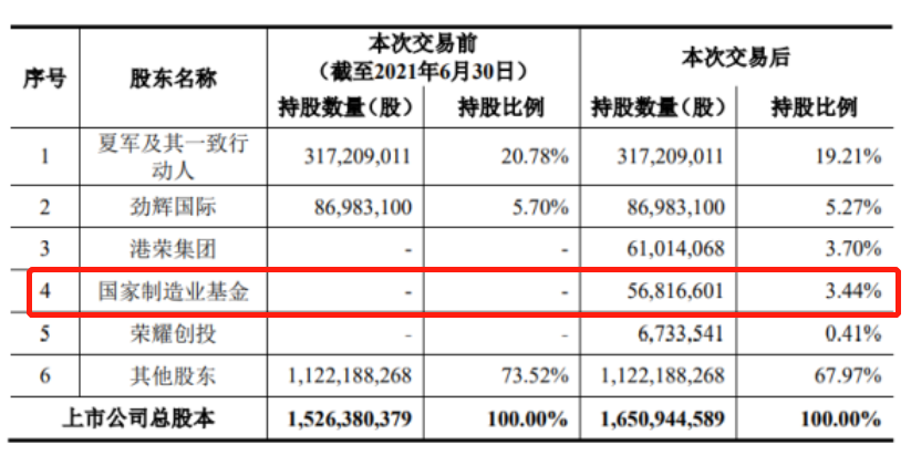 值得注意的是,国家制造业基金以其所持深圳创世纪股权认购创世纪发行的股份后,将成为创世纪的股东,持股比例达到3.44%。
