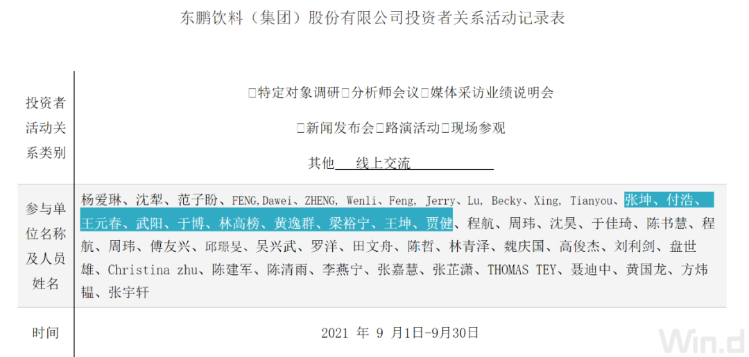 近日,东鹏饮料披露了9月份的机构调研记录,在其参与调研的名单中,赫然出现了张坤、付浩、王元春、武阳、林高榜等多位易方达基金/投资经理的名字,此外,广发基金的傅友兴、吴兴武等明星基金经理也现身其中。