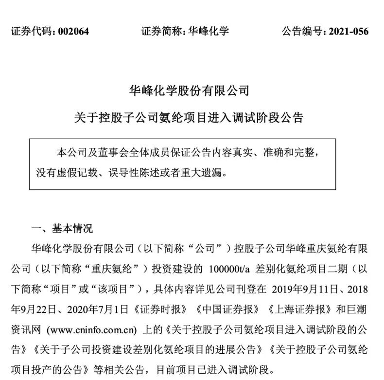 来源:华峰化学公告