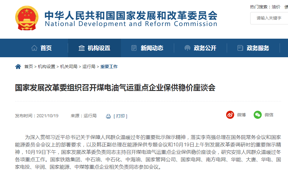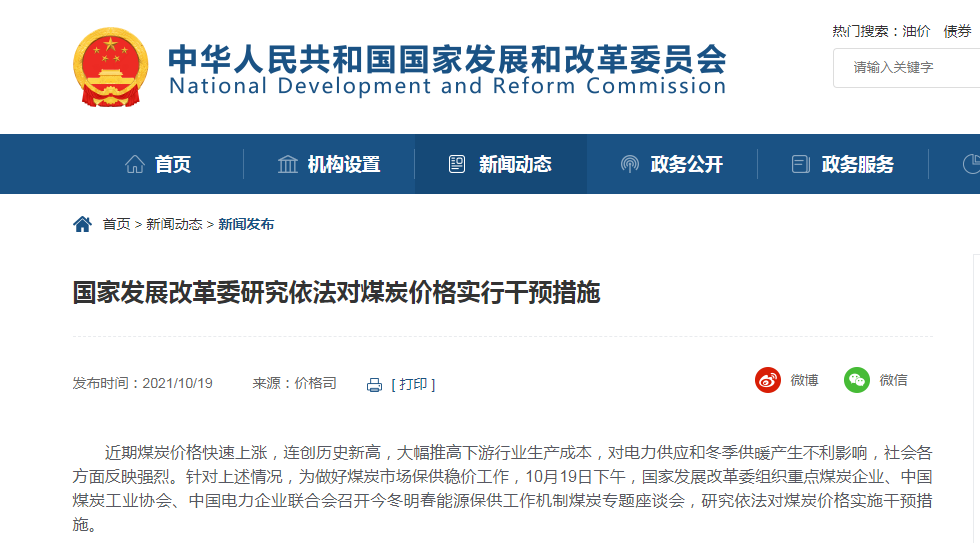10月19日下午,国家发改委召开今冬明春能源保供工作机制煤炭专题座谈会,研究依法对煤炭价格实施干预措施。
