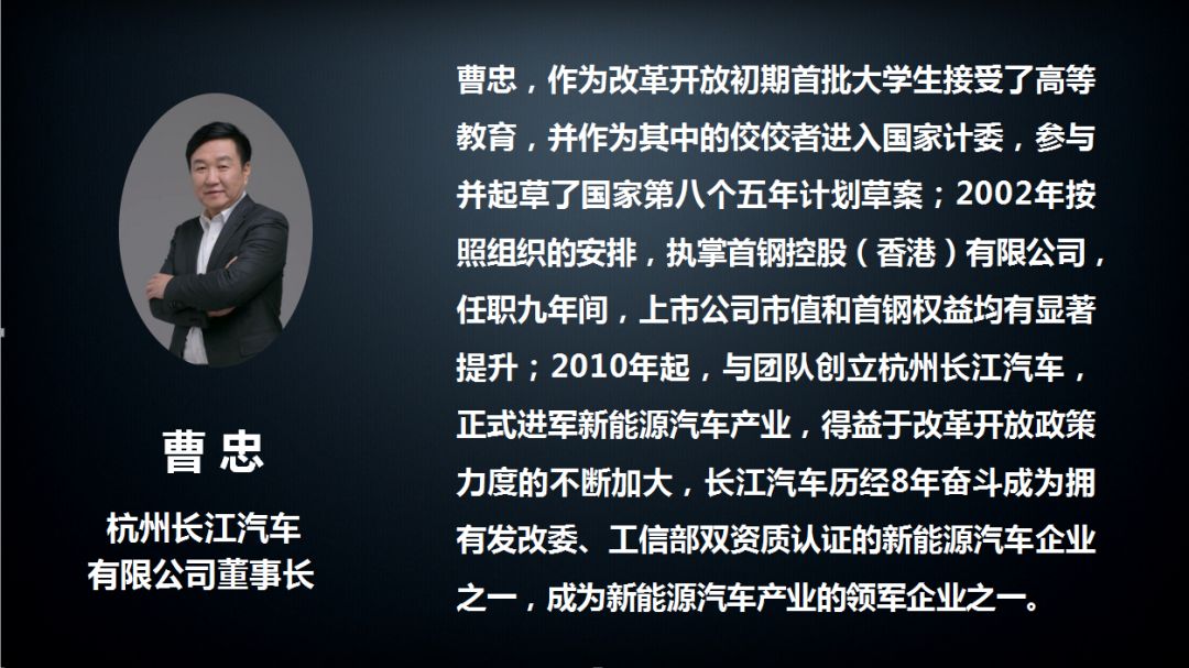 曹忠:长江汽车立志做新能源汽车,也就是做纯电动汽车,我们的团队是从2010年年底开始做电动车,团队来自于国家一些国有企业、合资公司。大家对中国汽车发展的历史都很了解,所以当时看到这个产业机会的时候,我们也做了一些论证,传统车已有130年,它诞生于德国、产业化于美国;过了60年,亚洲人开始做车,也就是1945年日本开始做车。日本人做车的时候,核心技术没有欧美的强。所以日本经过几十年的努力,他们着重在两个方面发力,一个是精细化,一个是节能,并且从中低端车开始切入这个产业和市场。日本人造车之后,又过了40年,也就是上个世纪的80年代末90年代初,中国人才开始做车,中国人做车在时间维度上来讲已经很落后了。我们定义传统汽车为机械技术这一代人类最伟大、最精致、最好的产品,它带动了整个世界各个行业的发展。机械技术的时代,核心技术就是发动机、变速箱、离合器等这些部件。但是,我们现在看日本,日本在欧美60年之后做车,它也付出了艰辛的努力,日本曾经在1994、1995年,力图推出一个高端车,也就是原来叫凌志,现在叫雷克萨斯,雷克萨斯又经历了20多年,它仍然无法挑战欧美的比如说宝马、奔驰、大众这些公司。所以中国的汽车工业在机械技术这一代,即使再付出努力,一些核心技术我们仍然很难超过。