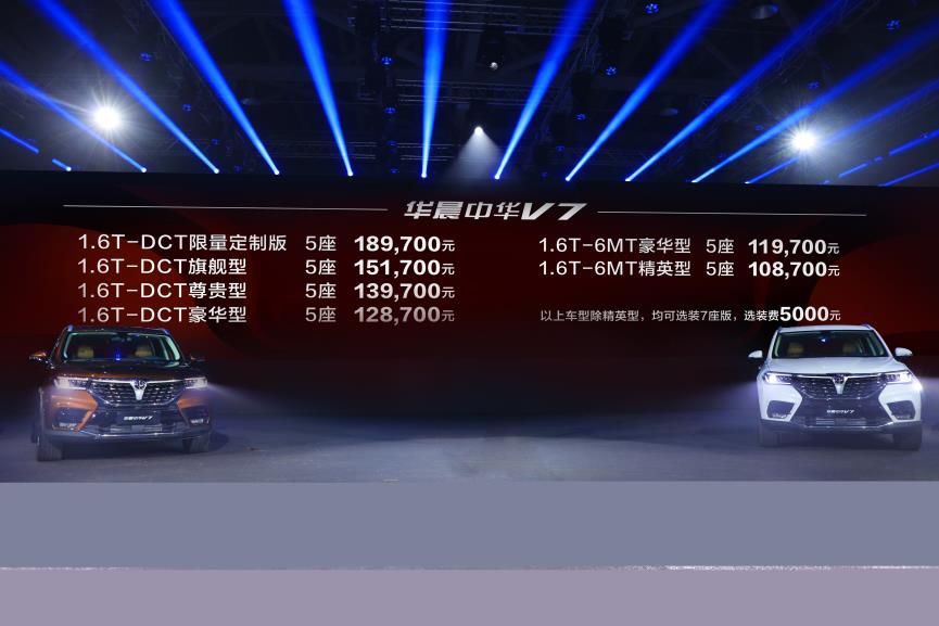 近日,华晨首款中型SUV中华V7正式上市,共六款车型,售价10.87万元-18.97万元。